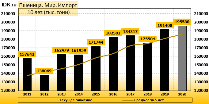Импорт: составит 195580 тысяч тонн. Значение по прошествии месяца поднялось на 1.27 процента.