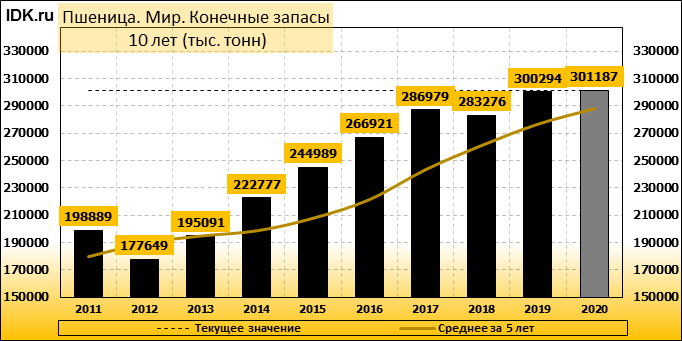 Конечные запасы: составят 301187 тысяч тонн. Оценка с последнего отчета снизилась на -1 процент.