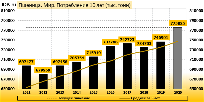 Глобальный прогноз по пшенице на 2020/21 год в этом месяце предусматривает увеличение запасов, повышение потребления, увеличение экспорта и сокращение остатков. Запасы увеличены на 3,5 миллиона тонн до 1 077,1 миллиона. Мировое производство увеличено до рекордных 776,8 млн. тонн, в основном за счет увеличения производства в Австралии, согласно последней оценке ABARES. Производство в Австралии повышено до рекордных 33,0 млн. тонн, что превосходит предыдущий рекорд 2016/17 года в 31,8 млн. Мировое потребление в 2020/21 году увеличено на 6,6 миллиона тонн до 775,9 миллиона, в основном за счет увеличения кормового и остаточного потребления в Китае.