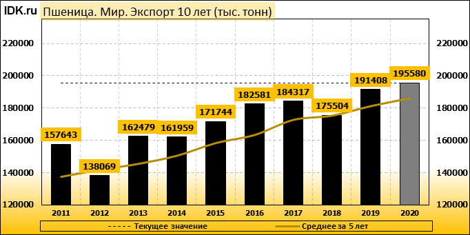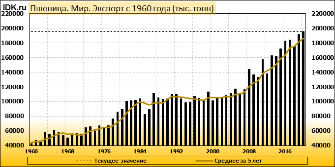 Экспорт: оценивается в 195580 тысяч тонн. За месяц показатель вырос на 1.27 процента.