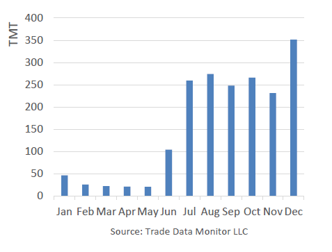 По состоянию на конец февраля отложенные продажи сорго в США с поставкой к августу 2021 года составили 2,8 млн. тонн, что является вторым по величине объемом в истории. Планируется, что почти три четверти этих продаж пойдут в Китай, а остальные в основном зарегистрированы для поставки в неизвестных направлениях. Продажи на традиционных рынках, в Японии и Мексике, были незначительными. В ответ на высокие продажи, цены на сорго в портах Мексиканского залива неуклонно росли и в настоящее время составляют около 350 долларов за тонну, что является самым высоким показателем за последнее десятилетие.