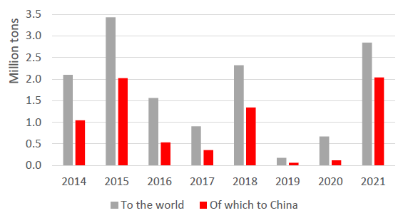 Ожидается, что высокие цены приведут к росту посевов сорго в США весной 2021/22 года, что будет способствовать увеличению производства. Прогнозируется, что экспорт достигнет рекордного уровня, что отражает более крупные доступные запасы и высокий внешний спрос. Уже забронировано 703 000 тонн для поставки в 2021/22 году, что является беспрецедентным объемом продаж для начала года.