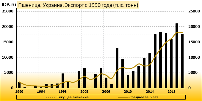 Прогноз производства пшеницы в Украине в 2020/21 году не изменился с прошлого месяца и составляет 25,5 миллиона метрических тонн, что на 3,67 млн. тонн или 12,58 процентов меньше, чем было произведено в прошлом году. Оценки урожайности и уборочной площади также не изменились по сравнению с прошлым месяцем. Урожайность оценивается в 3,75 тонны с гектара, уборочная площадь — в 6,8 миллиона гектаров, что на 3 процента меньше, чем в прошлом году. Прогноз по экспорту пшеницы из Украины в 2020/21 году остался без изменений и составляет 17,5 млн. тонн.