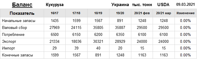 Смотрите также баланс по кукурузе на 12 марта 2021 по России
