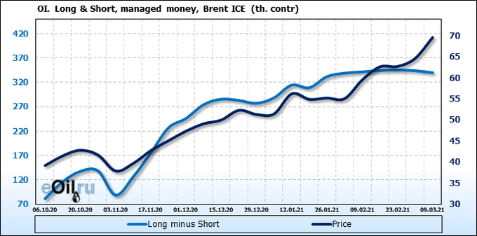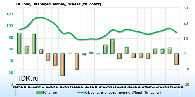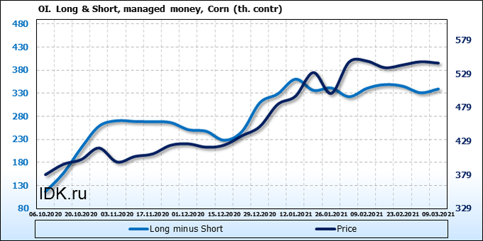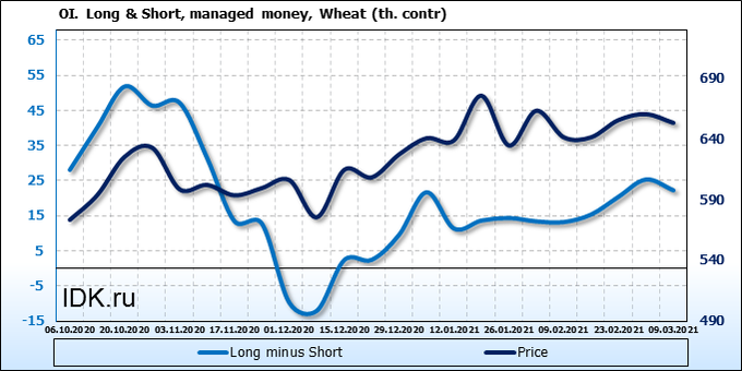 Смотрим на объемы открытого интереса управляющих. Вы должны учитывать, что это данные трехдневной давности (за вторник прошедшей недели), они же и самые последние из тех, что публикует биржа ICE.