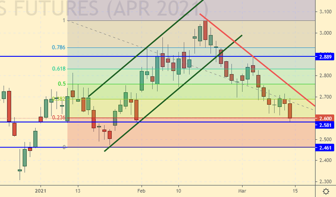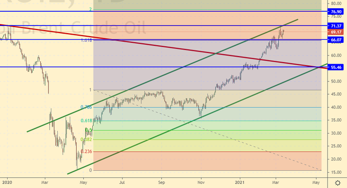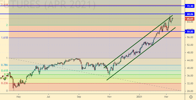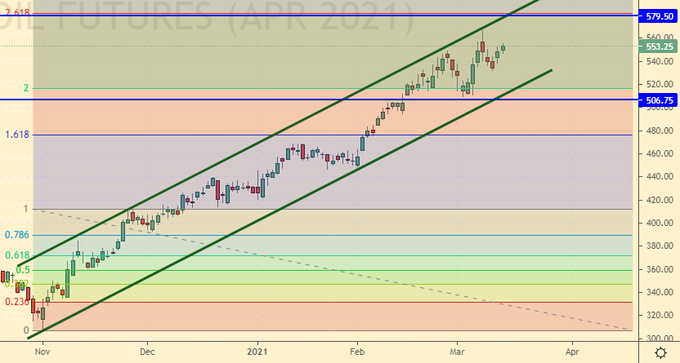 Сценарий роста: рассматриваем апрельский фьючерс, дата экспирации 29 марта. Здесь можно покупать, причем агрессивно. Будем надеяться, что спрос со стороны Европы будет поддерживать рынок.