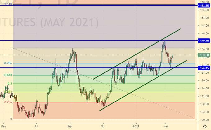 Покупка: нет. Кто в позиции от 128.0 перенесите стоп на 125.90. Цель: Цель: 157.0.