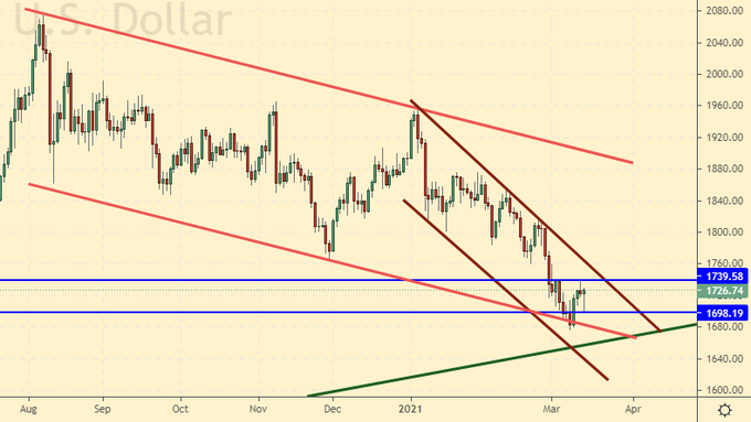 19-го марта состоится заседание ЦБ РФ. Посмотрим, что будет делать Центральный Банк, заметит он инфляцию или нет. Не исключено, что нет, так как предпочтение будет отдаваться стимулированию экономики. Закручивание гаек, оно же повышение ставки, будет оттягиваться как можно дольше.