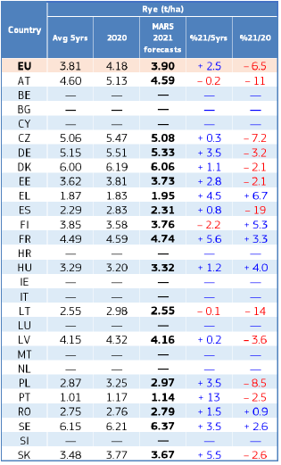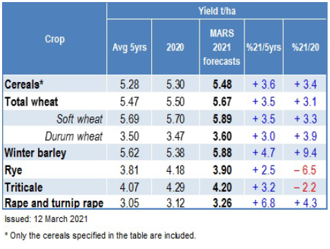 После зимы, полной резко контрастирующих условий, озимые посевы начали весну в довольно хорошем состоянии. Поскольку сезон только начался, прогнозы урожайности, представленные в этом выпуске Бюллетеня, — за некоторыми исключениями — основаны на исторических тенденциях. По большинству культур и стран эти показатели заметно выше прошлогодних показателей и выше среднего уровня за 5 лет, в первую очередь из-за невысокой урожайности в последние годы.