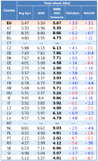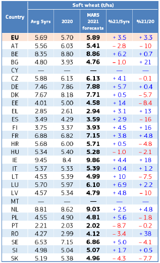 Прогноз урожайности мягкой пшеницы (т/га) на 2021 г.