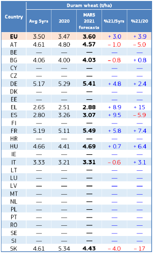 Прогноз урожайности твердой пшеницы (т/га) на 2021 г.