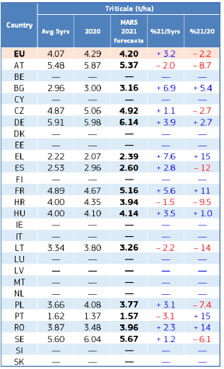 Прогноз урожайности тритикале (т/га) на 2021 г.