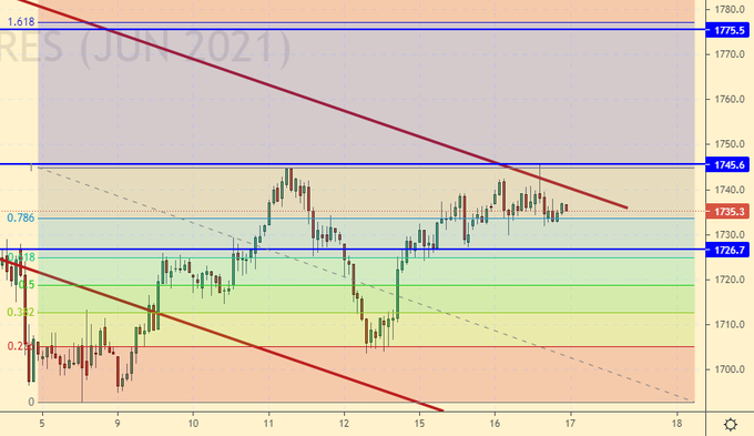 Продавцы пока не пустили золото выше 1750, однако если вечерние комментарии председателя ФРС будут мягкими, можем увидеть рост вплоть до 1850. Рекомендуем до сегодняшнего вечера (21:00 Мск.) никаких решений не принимать.
