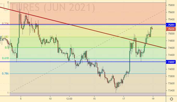 Покупка: после роста выше 74.50. Стоп: 73.60. Цель: 80.00. Кто в позиции от 73.80, перенесите стоп на 73.60. Цель: 80.00.