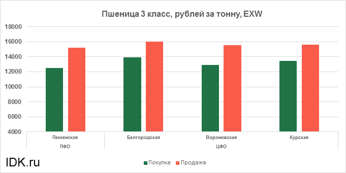 За прошедшую неделю с 15.03.2021 по 19.03.2021 средняя цена на пшеницу 4-го класса, согласно выставленным заявкам трейдеров, упала по всем округам на 208 рублей. Средняя цена составляет 13165 рублей за тонну.