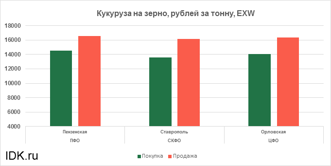 За прошедшую неделю с 15.03.2021 по 19.03.2021 средняя цена кукурузы на зерно, согласно выставленным заявкам трейдеров, выросла по всем округам на 340 рублей. Средняя цена составляет 15214 рублей за тонну.