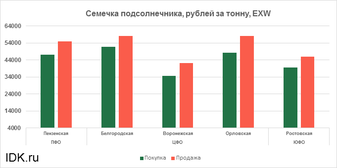 За прошедшую неделю с 15.03.2021 по 19.03.2021 средняя цена семечки подсолнечника, согласно выставленным заявкам трейдеров, выросла по всем округам на 7148 рублей. Средняя цена составляет 47494 рубля за тонну.