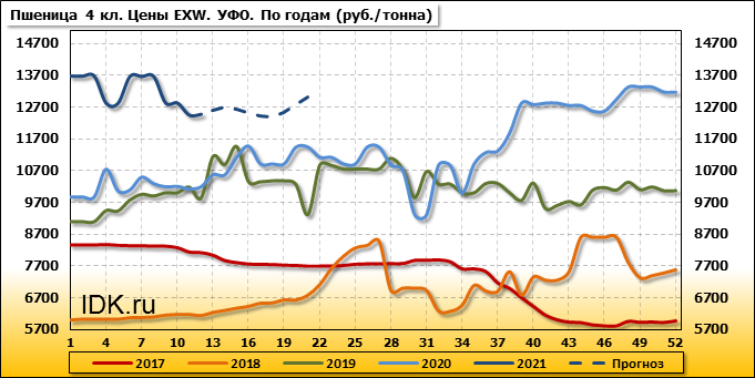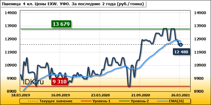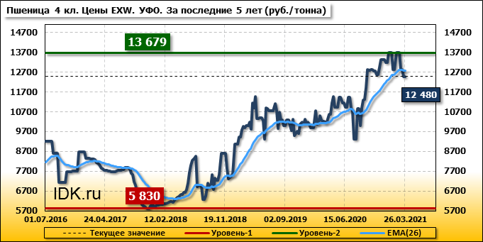 Цены на пшеницу 4-го класса поднялись на 31 руб./т. и на данный момент составляют 12480 рублей за тонну.