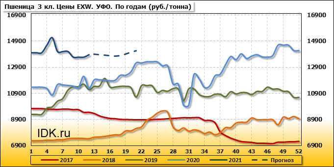 Внутренние цены на пшеницу 3 класса в Уральском федеральном округе выросли на 184 руб./т. и на данный момент составляют 13843 рубля за тонну.