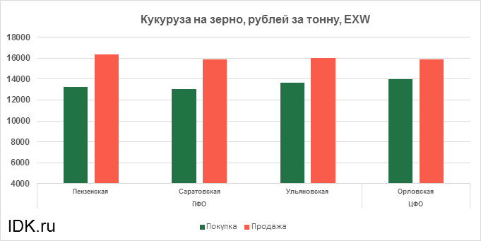 За прошедшую неделю с 22.03.2021 по 26.03.2021 средняя цена кукурузы на зерно, согласно выставленным заявкам трейдеров, упала по всем округам на 538 рублей. Средняя цена составляет 14839 рублей за тонну.