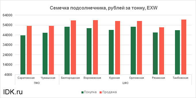 За прошедшую неделю с 22.03.2021 по 26.03.2021 средняя цена семечки подсолнечника, согласно выставленным заявкам трейдеров, выросла по всем округам на 1566 рублей. Средняя цена составляет 51465 рублей за тонну.