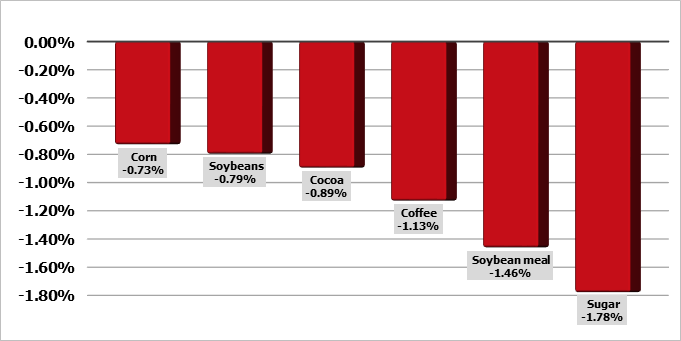 Цены на пшеницу в Европе упали в понедельник, при этом цены на ближайший месяц упали на 2% из-за отсутствия спроса, в то время как на цены нового урожая оказала давление благоприятная для урожая погода в северном полушарии. Спрос остается низким, и в настоящее время не проводится тендеров, которые могли бы привлечь европейскую пшеницу. Также возросла озабоченность по поводу китайского спроса, поскольку новые случаи африканской чумы свиней в последние месяцы поставили под сомнение производство свинины в стране.