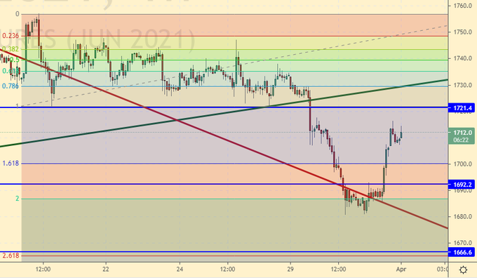 Продажа: при подходе к 1720. Стоп: 1726. Цель: 1666 (1610). Кто в позиции от 1725, 1729 и 1720, держите стоп на 1721. Цель: 1666 (1610).