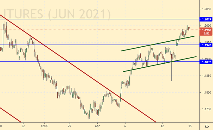 Как интересно, мы практически постучались, причем ногой (она же пятая волна возможного импульса вверх), в 1.2000. Если и здесь продавцы по паре ничего не предложат, то у доллара могут начаться структурные проблемы. Призыв Байдена к переговорам с Москвой выглядит очень странно. Западники никогда не садятся за стол переговоров в ситуации, когда ситуация развивается в их пользу. Продолжаем считать, что мы чего-то не знаем, но это что-то скоро вылезет наружу.