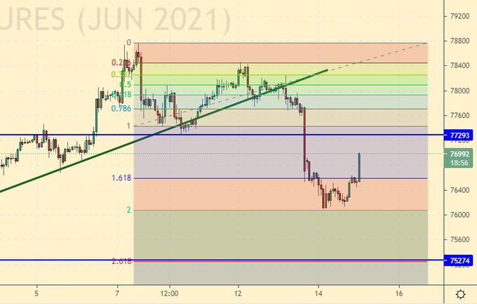 Продажа: нет. Кто в позиции от 76700, перенесите стоп на 78200. Цель: 753000. Считайте риски!