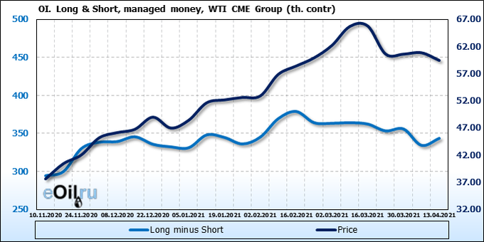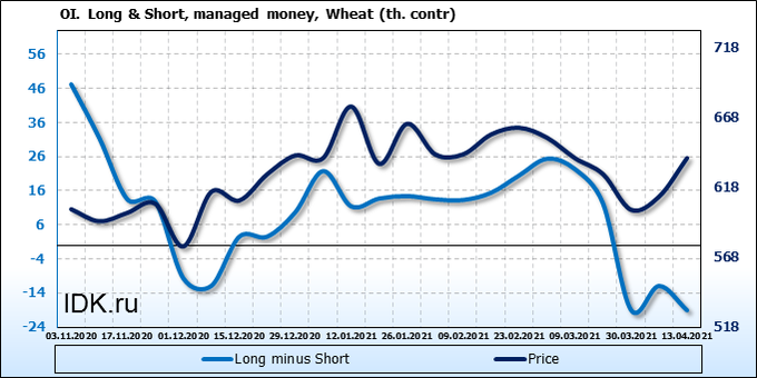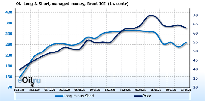 Смотрим на объемы открытого интереса управляющих. Вы должны учитывать, что это данные трехдневной давности (за вторник прошедшей недели), они же и самые последние из тех, что публикует биржа ICE.