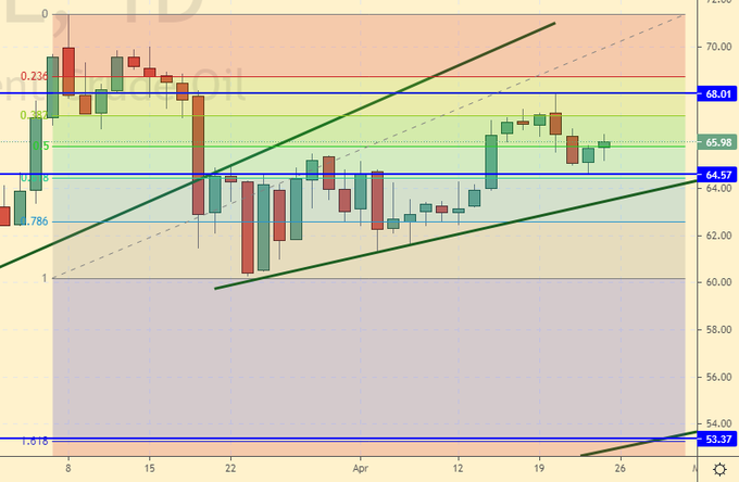 Сценарий роста: рассматриваем апрельский фьючерс, дата экспирации 30 апреля. Как и неделей ранее, продолжим трактовать текущую ситуацию в пользу продавцов, не покупаем.