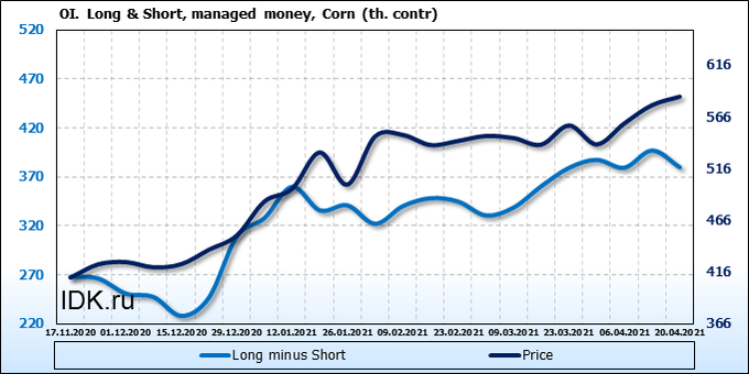 Смотрим на объемы открытого интереса управляющих. Вы должны учитывать, что это данные трехдневной давности (за вторник прошедшей недели), они же и самые последние из тех, что публикует биржа ICE.