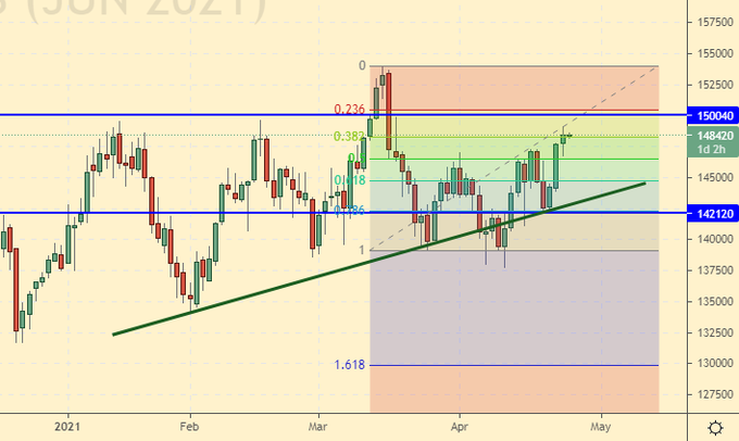 Сценарий роста: рассматриваем майский фьючерс, дата экспирации 14 мая. Мы действительно пошли на 1700. Вы должны быть в лонгах от 1470. В соответствии с нашими рекомендациями.