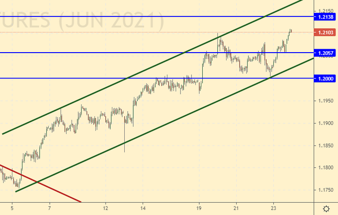 На этой неделе в среду у нас заседание ФРС. Повышения ставки никто не ждет, зато у Пауэлла будут на руках цифры за первый квартал. Отталкиваясь от них, он и построит своё выступление. Идея посещения отметки 1.2800 остается в голове. Нежелание проваливаться ниже 1.2000 вызывает бычьи эмоции.