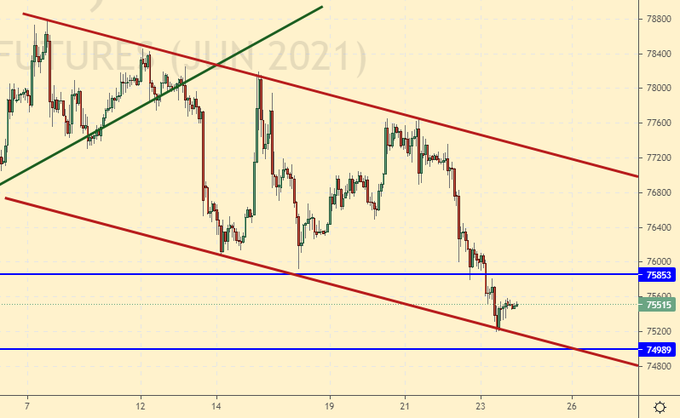 Покупка: сейчас и при касании 75100. Стоп: 74700. Цель: 85000.