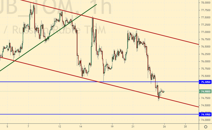 Покупка: сейчас и при касании 74.26. Стоп: 74.04. Цель: 85.00.