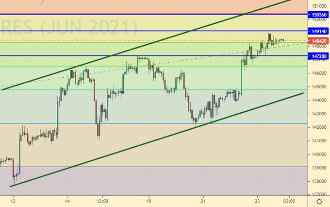 Продажа: сейчас и при подходе к 150000. Стоп: 152600. Цель: 100000. Кто в позиции от 148500, держите стоп на 152600. Цель: 100000.