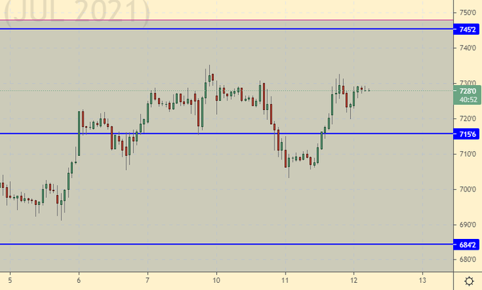 Пшеница (июльский контракт, CME Group, исполнение 14.07.2021)
