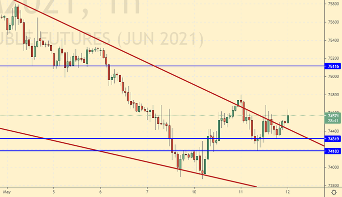 Продажа: нет. Кто в позиции от 74.20, перенесите стоп на 74.47. Цель: 71.20.