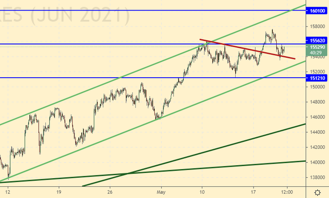 Продажа: в случае падения ниже 152000. Стоп: 156000. Цель: 120000.