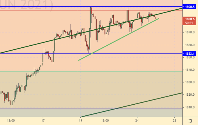 Продажа: сейчас. Стоп: 1891. Цель: 1830. Кто в позиции от 1880, перенесите стоп на 1891. Цель: 1830.