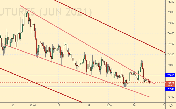 Продажа: нет. Кто в позиции от 73.90 и 73.40, перенесите стоп на 73.65. Цель: 71.20.