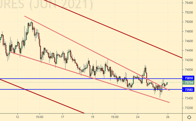Продажа: нет. Кто в позиции от 73.90 и 73.40, держите стоп на 73.65. Цель: 71.20.