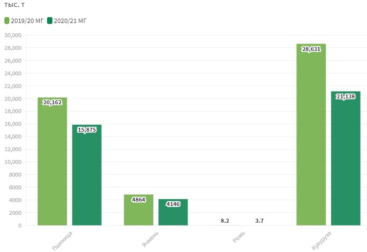 На отчетную дату в разрезе зерновых культур из Украины экспортировано:
