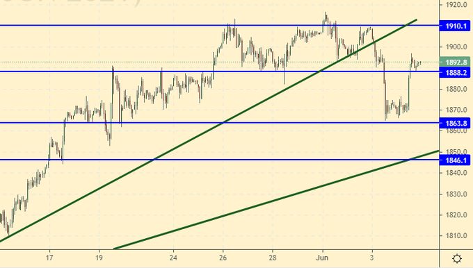 Начавший было рост индекс доллара в пятницу получил серьезную оплеуху в виде недостаточно большого числа новых рабочих мест, созданных американской экономикой в мае. В целом рынок заряжен на посещение 2000, но могут быть сюрпризы.