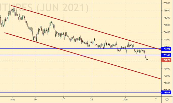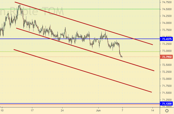 Продажа: нет. Кто в позиции от 73.20, перенесите стоп на 73.40. Цель: 71.20.