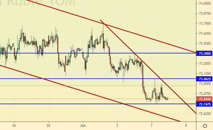 Продажа: нет. Кто в позиции от 73.20, перенесите стоп на 73.17. Цель: 71.20.