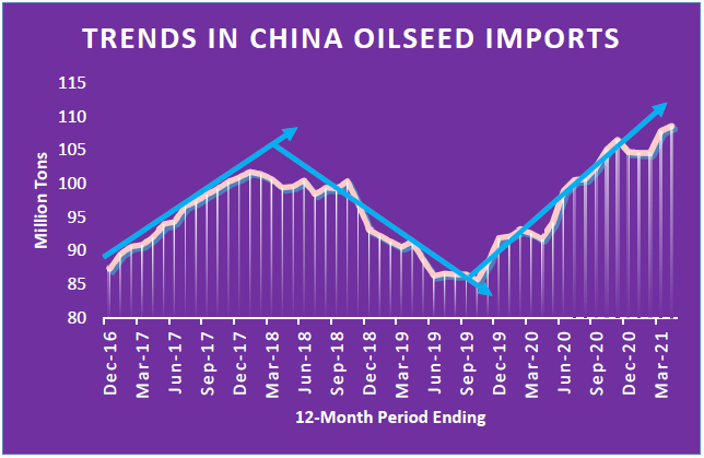 Рисунок 1. Тенденции в импорте масличных в Китай