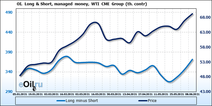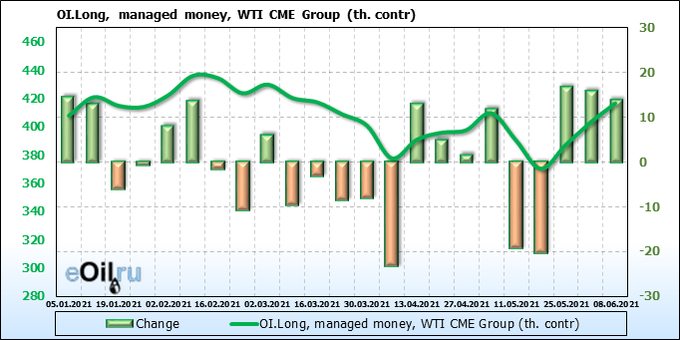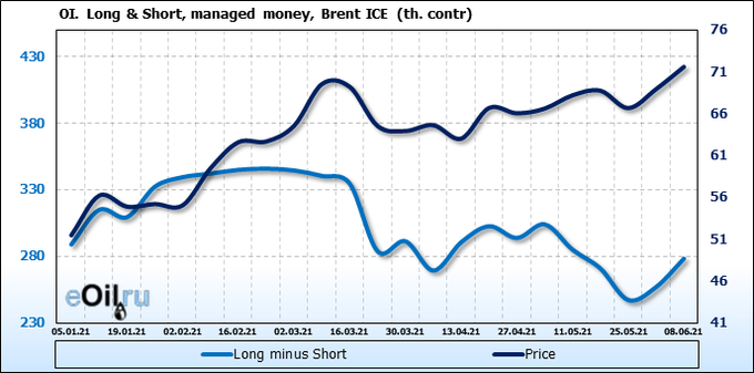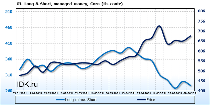 Смотрим на объемы открытого интереса управляющих. Вы должны учитывать, что это данные трехдневной давности (за вторник прошедшей недели), они же и самые последние из тех, что публикует биржа ICE.