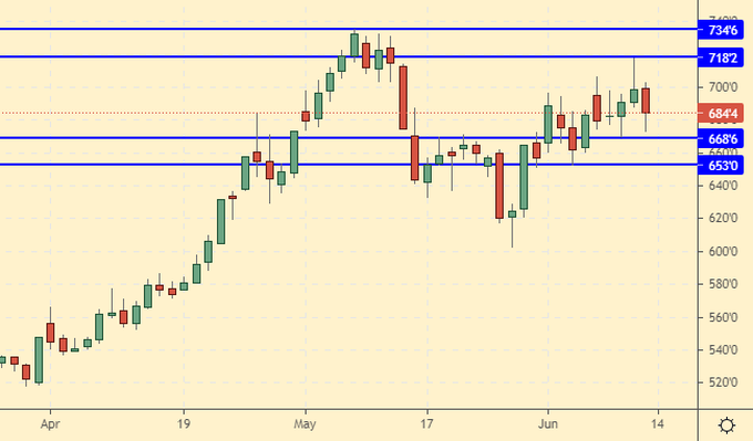 Несмотря на то, что быки продолжили уходить с рынка, цены отказались показывать новые минимумы. Не исключено, что нам не удастся пройти этим летом ниже 650.0 центов за бушель.